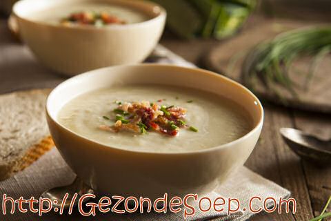 - Serveer je preisoep met spekjes en ringetjes verse prei of bieslooksnippers.
