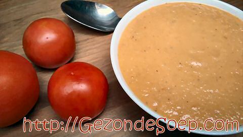 Zorg er steeds voor dat tomaten de hoofdgroente van je soep blijven, zoals bijvoorbeeld in onderstaand recept waar ik met 2 tomaten een bloemkoolstam en andere groentenrestjes pureer tot soep: